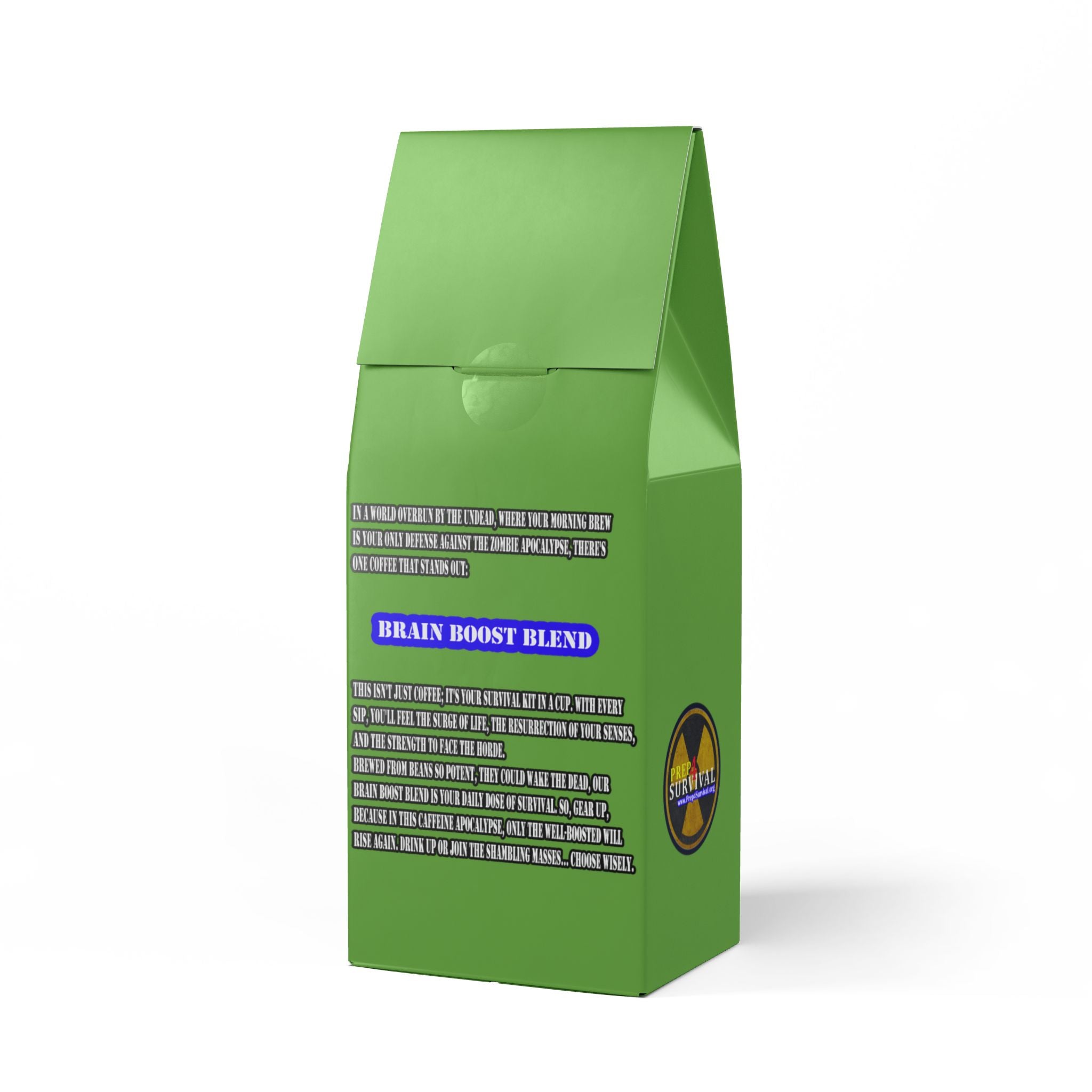 In a world overrun by the undead, where your morning brew is your only defense against the zombie apocalypse, there's one coffee that stands out: our Brain Boost Blend. This isn't just coffee; it's your survival kit in a cup. With every sip, you'll feel the surge of life, the resurrection of your senses, and the strength to face the horde. Brewed from beans so potent, they could wake the dead, our Brain Boost Blend is your daily dose of survival. So, gear up, because in this caffeine apocalypse, only the well-caffeinated will rise again. Drink up or join the shambling masses. Choose wisely.